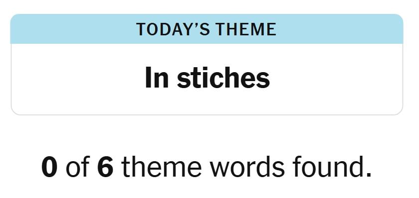 Today’s theme or hint for the puzzle is, “IN STITCHES” and there are six theme words to be found.