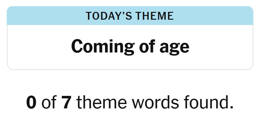 Today’s theme or hint for the puzzle is, “COMING OF AGE” and there are seven theme words to be found.