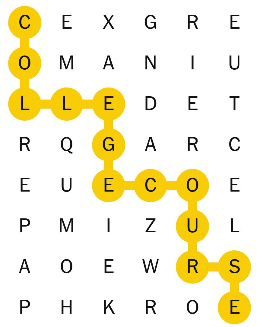 There is also a “spangram” which is a word on the board that describes the theme of the puzzle for the day. It will touch two opposite sides of the board and may be two words.