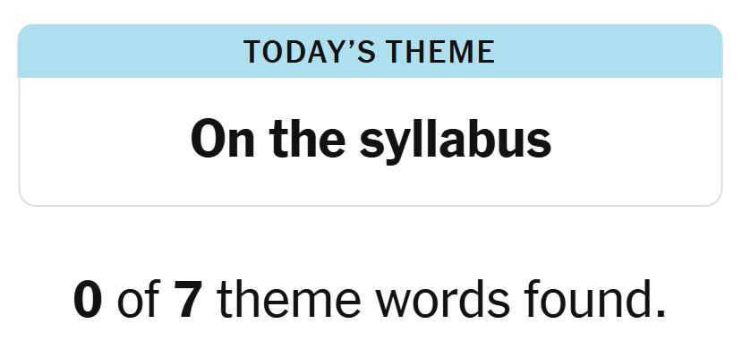 Today’s theme or hint for the puzzle is, “ON THE SYLLABUS” and there are seven theme words to be found.