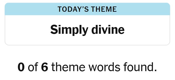 Today’s theme or hint for the puzzle is, “SIMPLY DIVINE” and there are six theme words to be found.