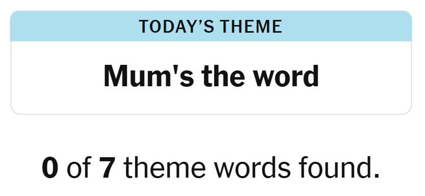 Today’s theme or hint for the puzzle is, “MUM’S THE WORD” and there are seven theme words to be found.