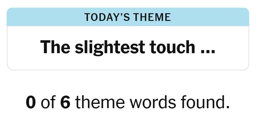 Today’s theme or hint for the puzzle is, “THE SLIGHTEST TOUCH…” and there are six theme words to be found.