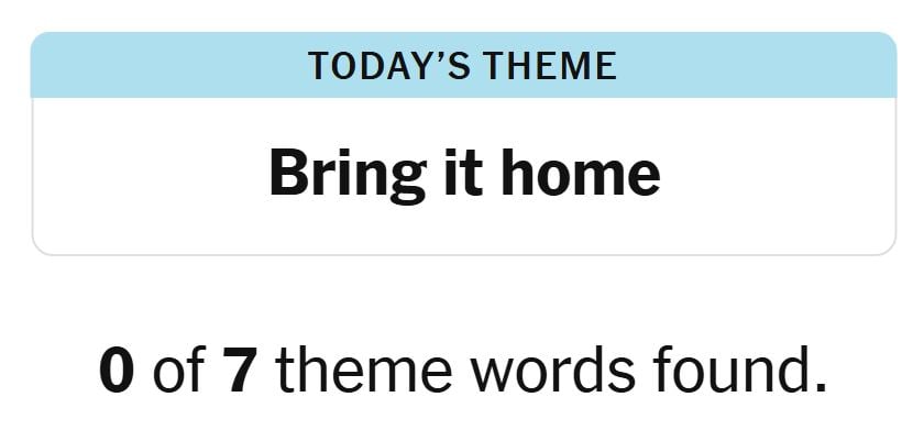Today’s theme or hint for the puzzle is, “BRING IT HOME” and there are seven theme words to be found.