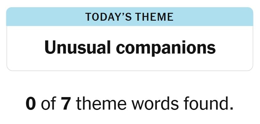 Today’s theme or hint for the puzzle is, “UNUSUAL COMPANIONS” and there are seven theme words to be found.