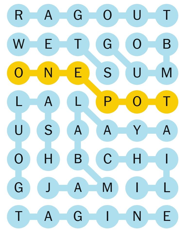There is also a “spangram” which is a word on the board that describes the theme of the puzzle for the day. It will touch two opposite sides of the board and may be two words.
