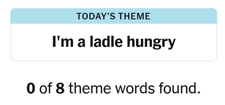 Today’s theme or hint for the puzzle is, “I’M A LADLE HUNGRY” and there are eight theme words to be found.