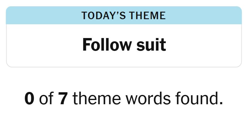 Today’s theme or hint for the puzzle is, “FOLLOW SUIT” and there are seven theme words to be found.