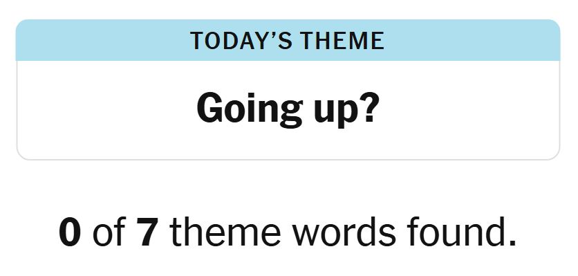 Today’s theme or hint for the puzzle is, “GOING UP?” and there are seven theme words to be found.