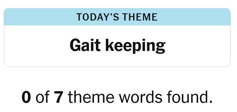 Today’s theme or hint for the puzzle is, “GAIT KEEPING” and there are seven theme words to be found.