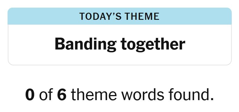 Today’s theme or hint for the puzzle is, “BANDING TOGETHER” and there are six theme words to be found.