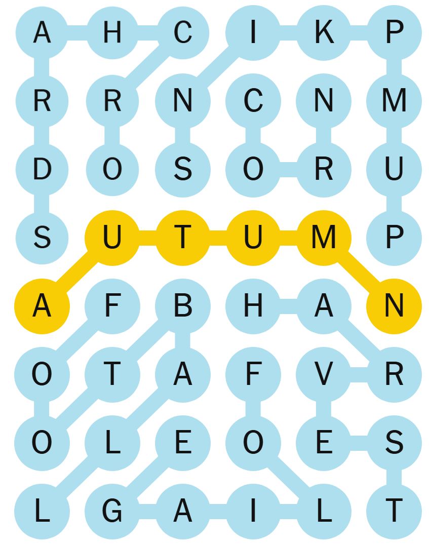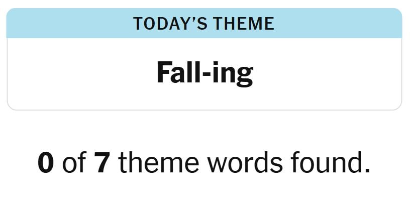 Today’s theme or hint for the puzzle is, “FALL-ING” and there are seven theme words to be found.