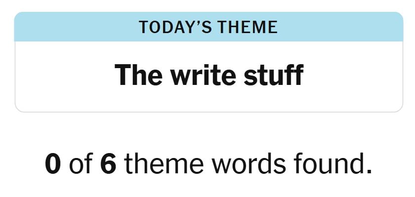 Today’s theme or hint for the puzzle is, “THE WRITE STUFF” and there are six theme words to be found.
