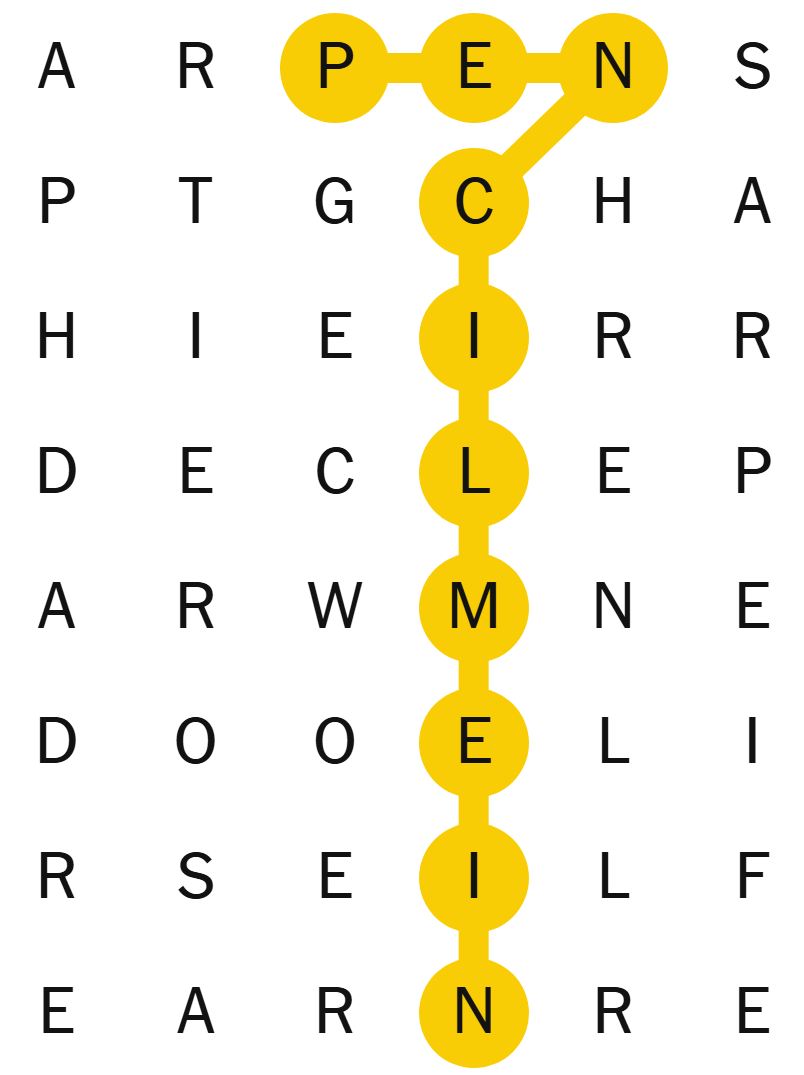 Once you have found the spangram word, it will stay highlighted in yellow.