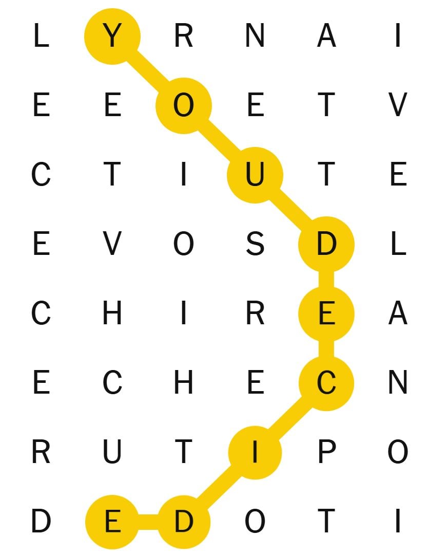 Once you have found the spangram word, it will stay highlighted in yellow.