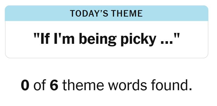 Today’s theme or hint for the puzzle is, “IF I’M BEING PICKY…” and there are six theme words to be found.