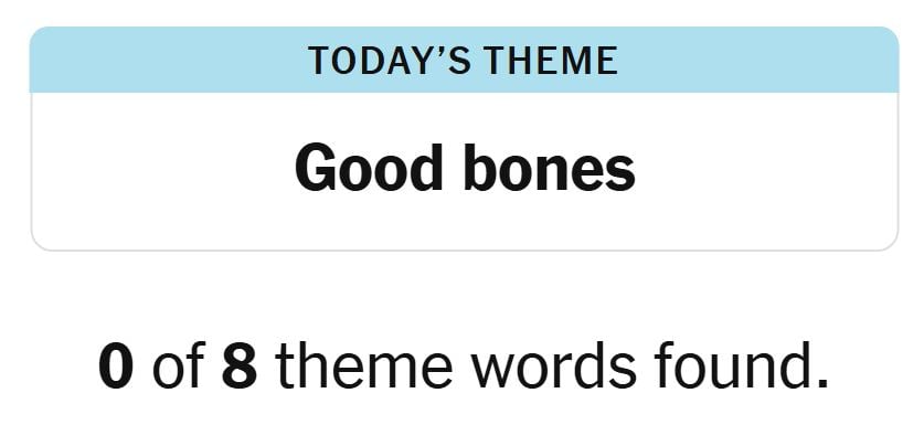 Today’s theme or hint for the puzzle is, “GOOD BONES” and there are eight theme words to be found.