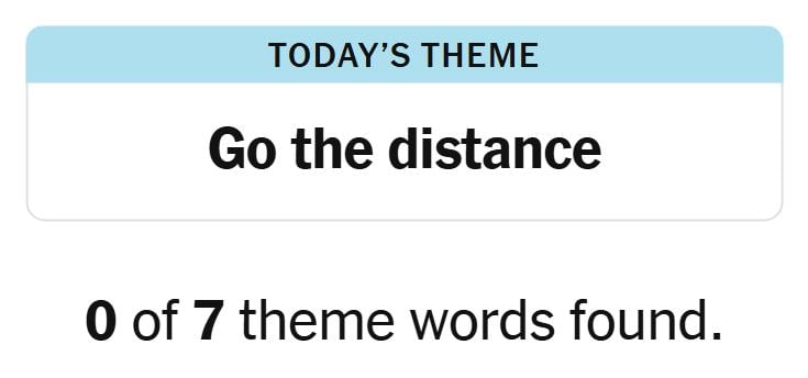 Today’s theme or hint for the puzzle is, “GO THE DISTANCE” and there are seven theme words to be found.
