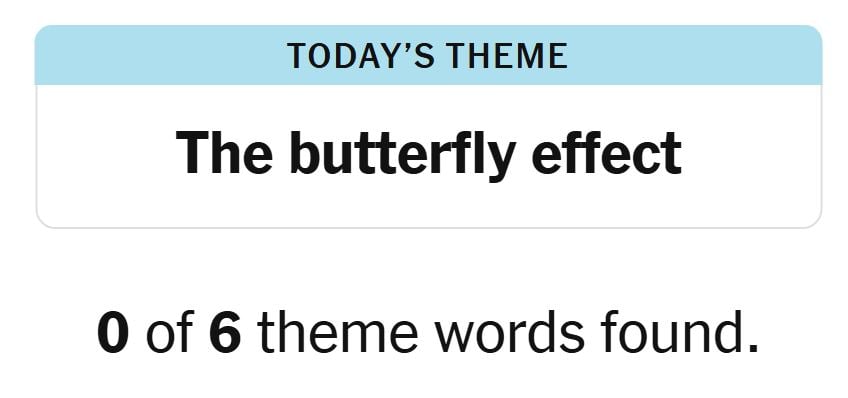 Today’s theme or hint for the puzzle is, “THE BUTTERFLY EFFECT” and there are six theme words to be found.