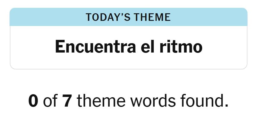 Today’s theme or hint for the puzzle is, “ENCUENTRA EL RITMO” and there are seven theme words to be found.