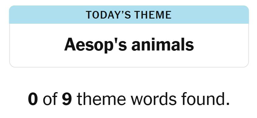 Today’s theme or hint for the puzzle is, “AESOP’S ANIMALS” and there are nine theme words to be found.