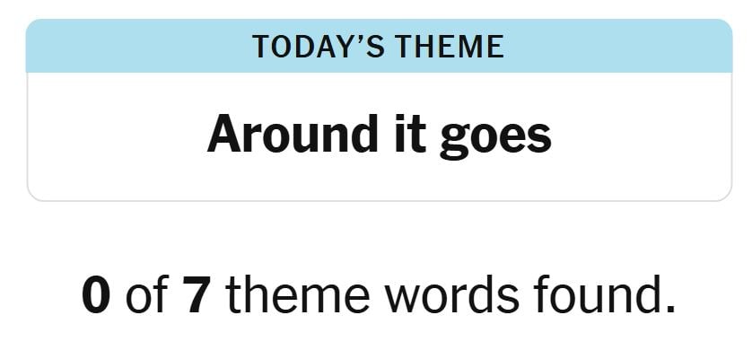 Today’s theme or hint for the puzzle is, “AROUND IT GOES” and there are seven theme words to be found.