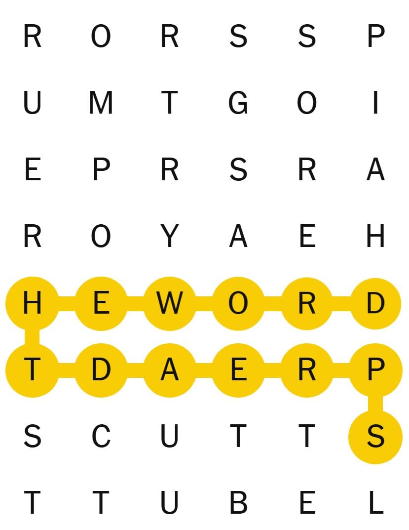 Once you have found the spangram word, it will stay highlighted in yellow.