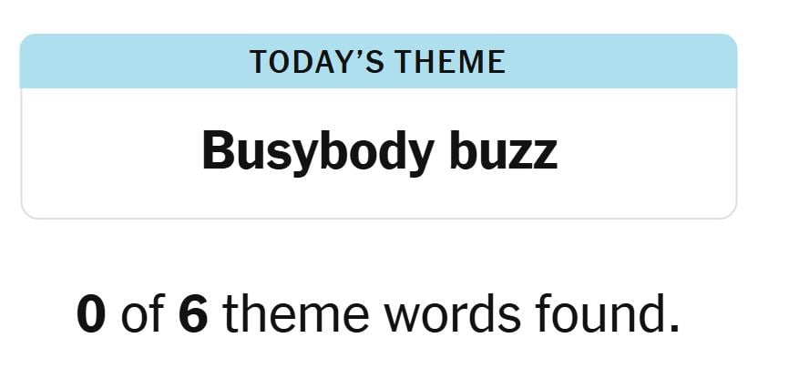 Today’s theme or hint for the puzzle is, “BUSYBODY BUZZ” and there are six theme words to be found.