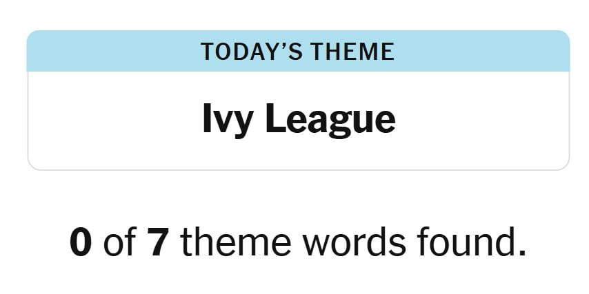 Today’s theme or hint for the puzzle is, “IVY LEAGUE” and there are seven theme words to be found.