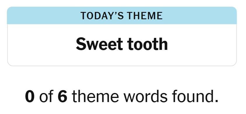 Today’s theme or hint for the puzzle is, “SWEET TOOTH” and there are six theme words to be found.