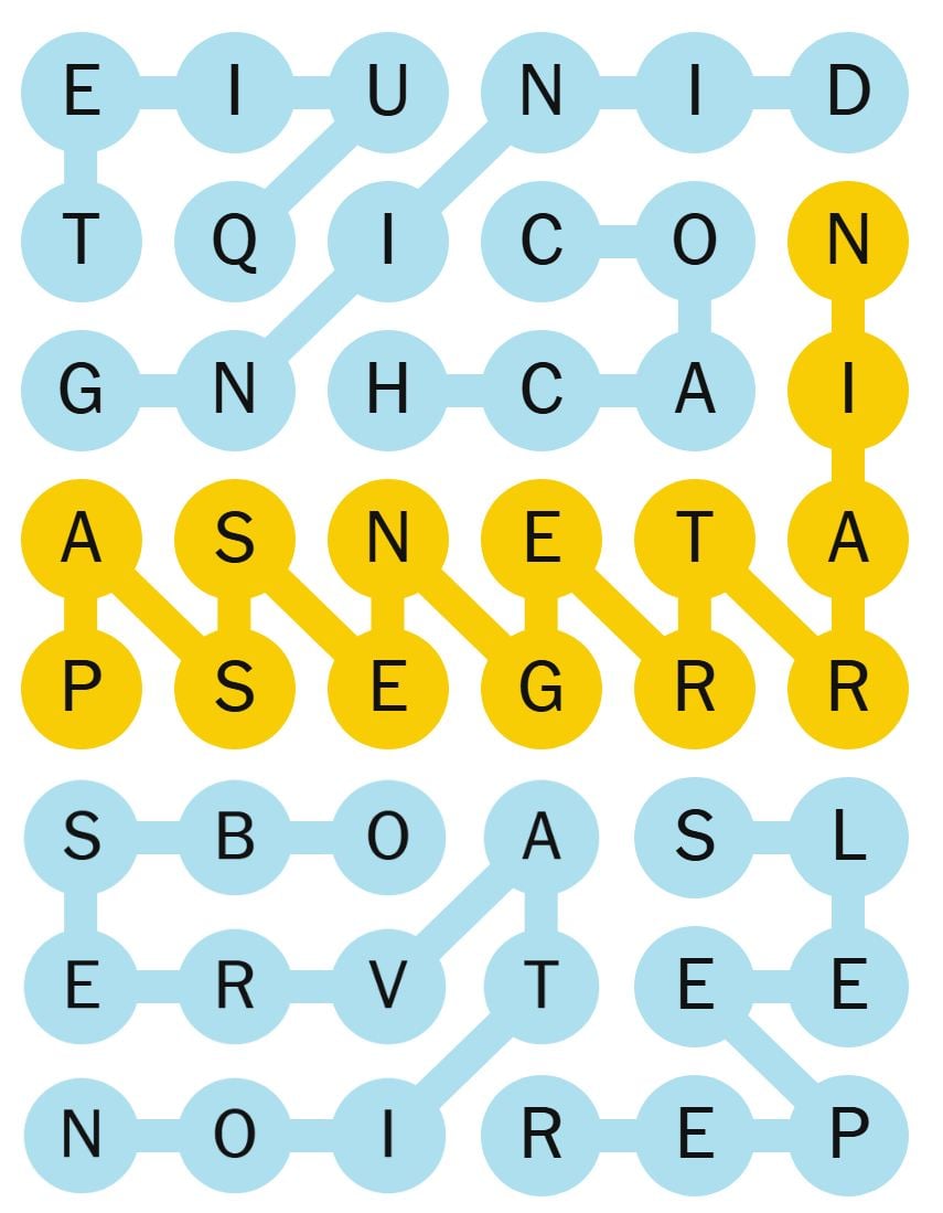 Once you have found the spangram word, it will stay highlighted in yellow.