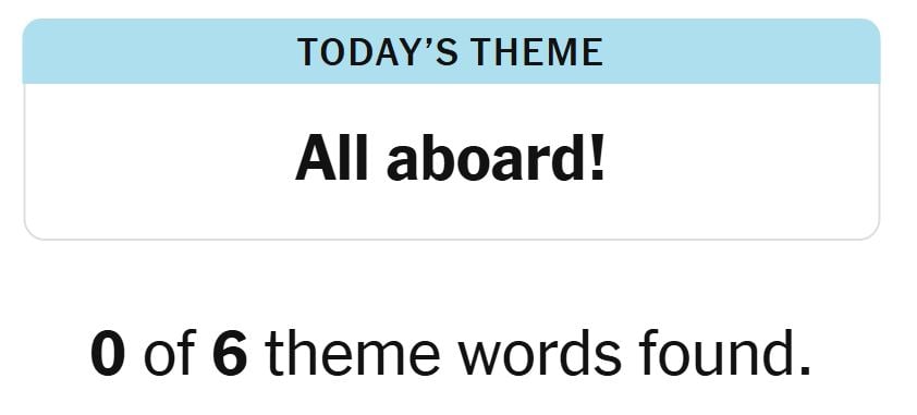 Today’s theme or hint for the puzzle is, “ALL ABOARD!” and there are six theme words to be found.