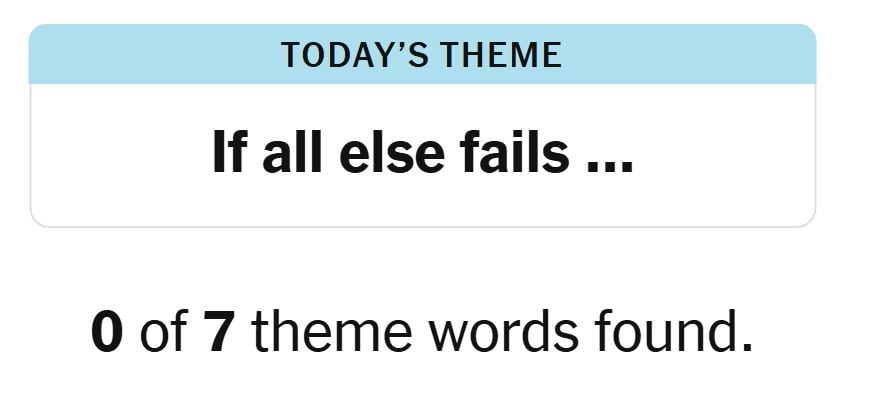 Today’s theme or hint for the puzzle is, “IF ALL ELSE FAILS…” and there are seven theme words to be found.