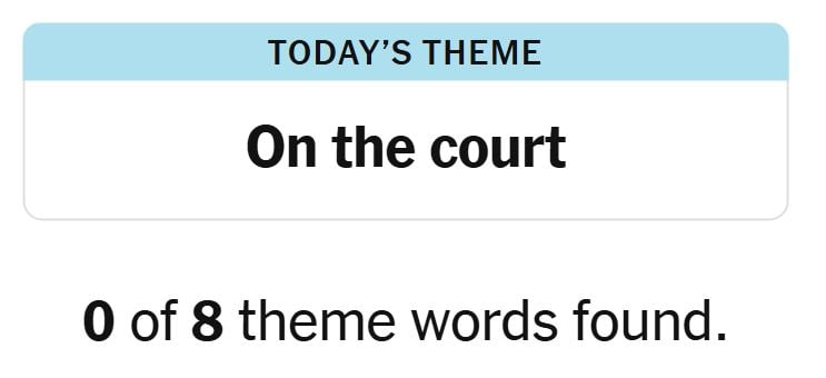 Today’s theme or hint for the puzzle is, “ON THE COURT” and there are eight theme words to be found.