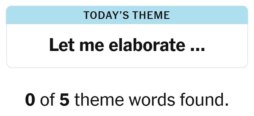 Today’s theme or hint for the puzzle is, “LET ME ELABORATE…” and there are five theme words to be found.