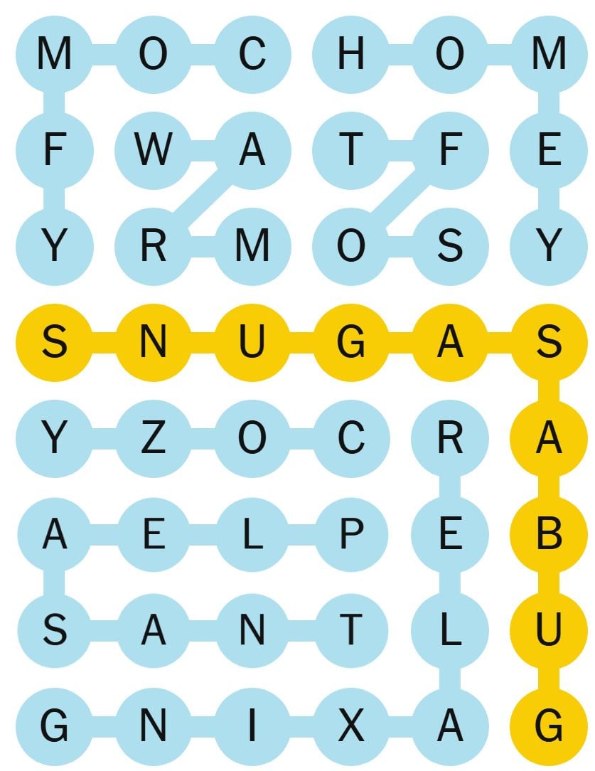 There is also a “spangram” which is a word on the board that describes the theme of the puzzle for the day. It will touch two opposite sides of the board and may be two words.