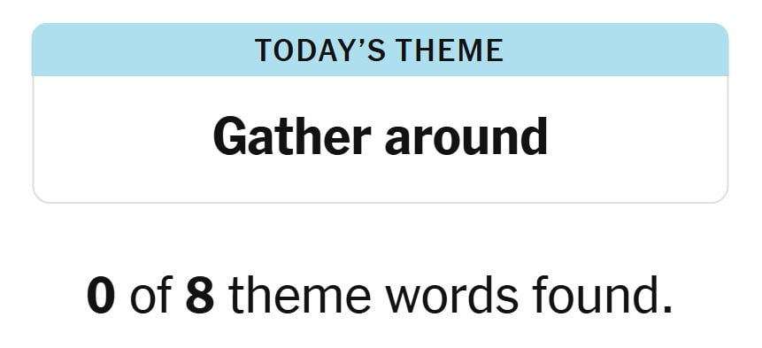 Today’s theme or hint for the puzzle is, “GATHER AROUND” and there are eight theme words to be found.
