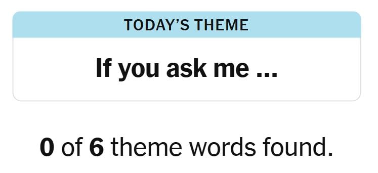 Today’s theme or hint for the puzzle is, “IF YOU ASK ME…” and there are six theme words to be found.