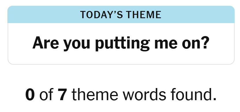 Today’s theme or hint for the puzzle is, “ARE YOU PUTTING ME ON?” and there are seven theme words to be found.