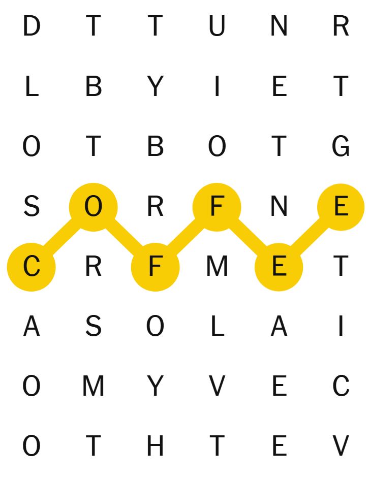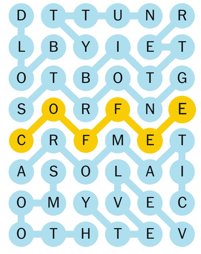 There is also a “spangram” which is a word on the board that describes the theme of the puzzle for the day. It will touch two opposite sides of the board and may be two words.