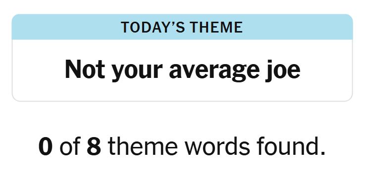 Today’s theme or hint for the puzzle is, “NOT YOUR AVERAGE JOE” and there are eight theme words to be found.