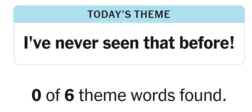 Today’s theme or hint for the puzzle is, “I’VE NEVER SEEN THAT BEFORE!” and there are six theme words to be found.