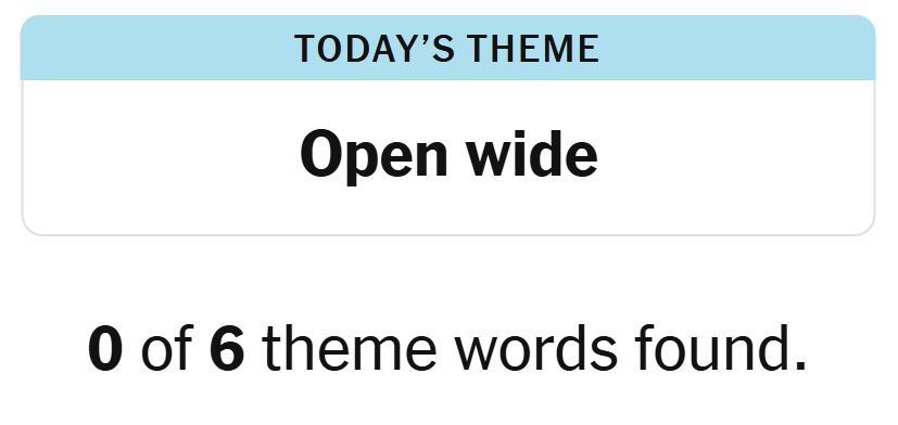Today’s theme or hint for the puzzle is, “OPEN WIDE” and there are six theme words to be found.