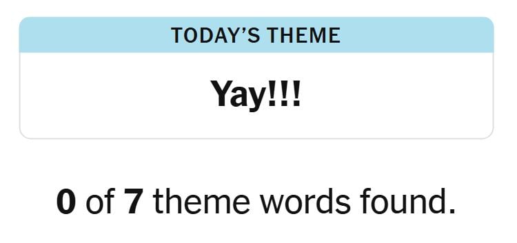 Today’s theme or hint for the puzzle is, “YAY!!” and there are seven theme words to be found.
