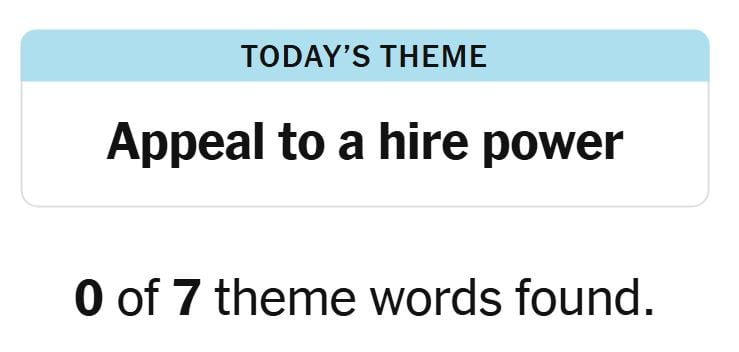 Today’s theme or hint for the puzzle is, “APPEAL TO A HIRE POWER” and there are seven theme words to be found.