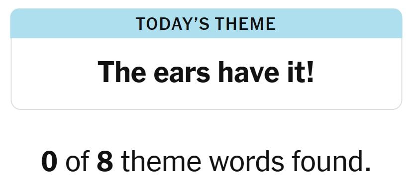 Today’s theme or hint for the puzzle is, “THE EARS HAVE IT!” and there are eight theme words to be found.