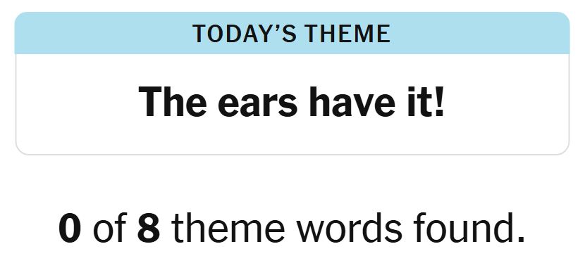 Today’s theme or hint for the puzzle is, “THE EARS HAVE IT!” and there are eight theme words to be found.