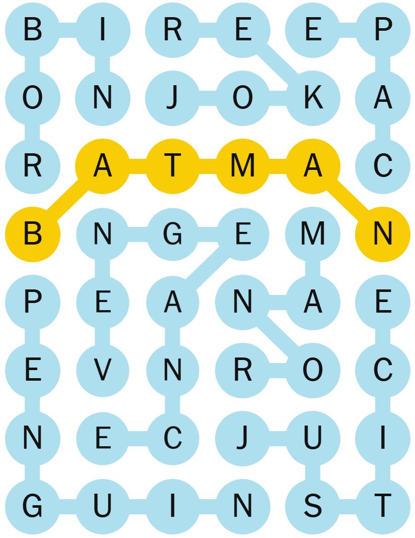 There is also a “spangram” which is a word on the board that describes the theme of the puzzle for the day. It will touch two opposite sides of the board and may be two words.