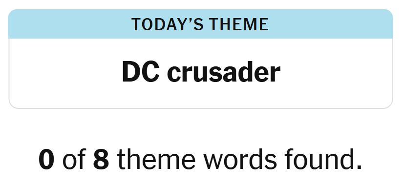 Today’s theme or hint for the puzzle is, “DC CRUSADER” and there are eight theme words to be found.