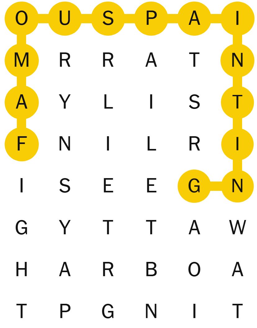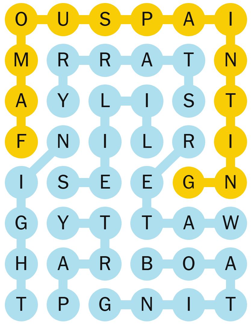 Once you have found the spangram word, it will stay highlighted in yellow.